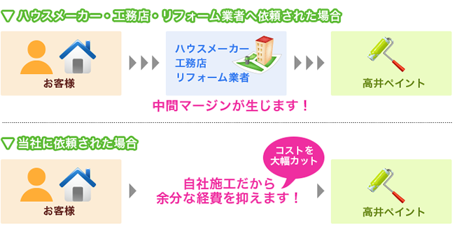 千葉市花見川の住宅塗装業 高井ペイント。戸建て住宅・アパート・マンション・店舗の屋根塗装・外壁塗装・室内塗装などお住い・建物の塗装全般に対応いたしております。千葉市・習志野市・八千代市・船橋市・鎌ヶ谷市・四街道市を中心に、千葉県全域、茨城・東京・埼玉方面も対応可能です。